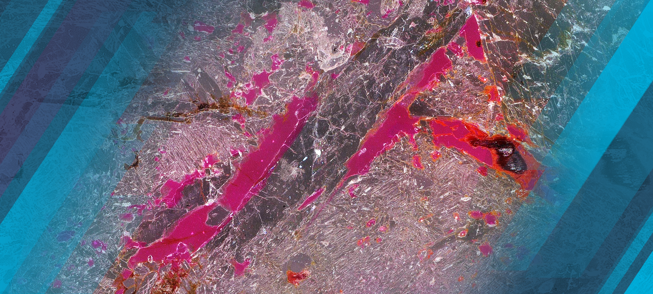 Cover photo: Thin slice of a potential hydrogen source rock (kimberlite). Pink epoxy was added to highlight permeability pathways for stimulated hydrogen production. (Photo by Sandia National Laboratories)