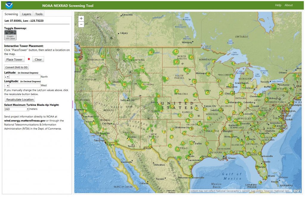 A collaborative effort between Sandia and National Oceanic and Atmospheric Administration led to the development of a publicly accessible site that provides developers basic NEXRAD viewshed access tailored to produce dynamic (i.e. includes specific turbine heights) viewsheds that are cropped to the county around the selected locations.